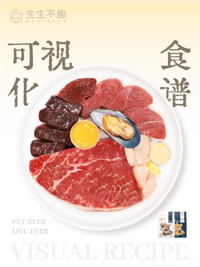与高温脱水的膨化粮不同,主食冻干通过真空低温环境下的冷冻干燥和升华过程,更好地保留了食材的营养成分。从某种意义上来看,主食冻干也是一种生骨肉。一款合格的主食冻干,**先要在原料上过关。秉承着“不计成本地打造符合猫狗健康需求的口粮”为品牌研发理念,生生不息从全球范围内挑选人可食用级别的优质原料,包括新西兰牛肉、智利火鸡、西班牙猪肉等。坚持「0骨骼」,坚持选择以高质量肌肉组织为核心原料,而非成本低廉的骨骼或其他低营养密度的填充物质。
